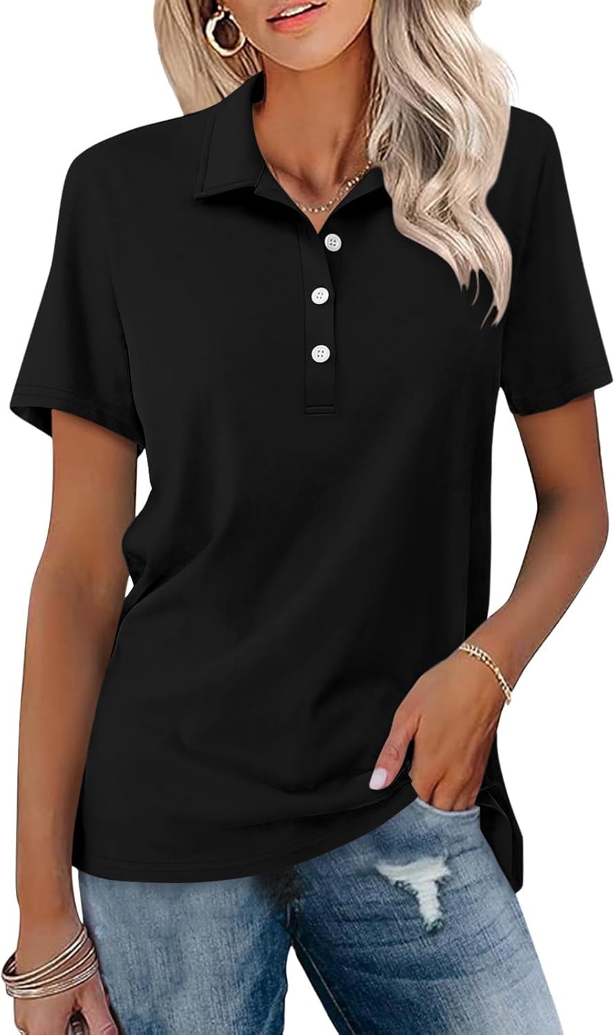 • Classic Design: short sleeve shirts for women, button-front design, lapel collar polo shirts, solid color, dressy causal style. The short sleeve polo shirts are perfect for a business casual style to show your confidence and charming appearance