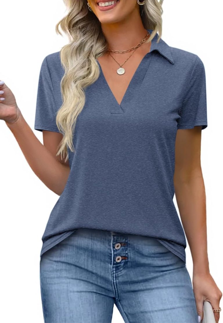 - Classic Design: short sleeve shirts for women, button-front design, lapel collar polo shirts, solid color, dressy causal style. The short sleeve polo shirts are perfect for a business casual style to show your confidence and charming appearance